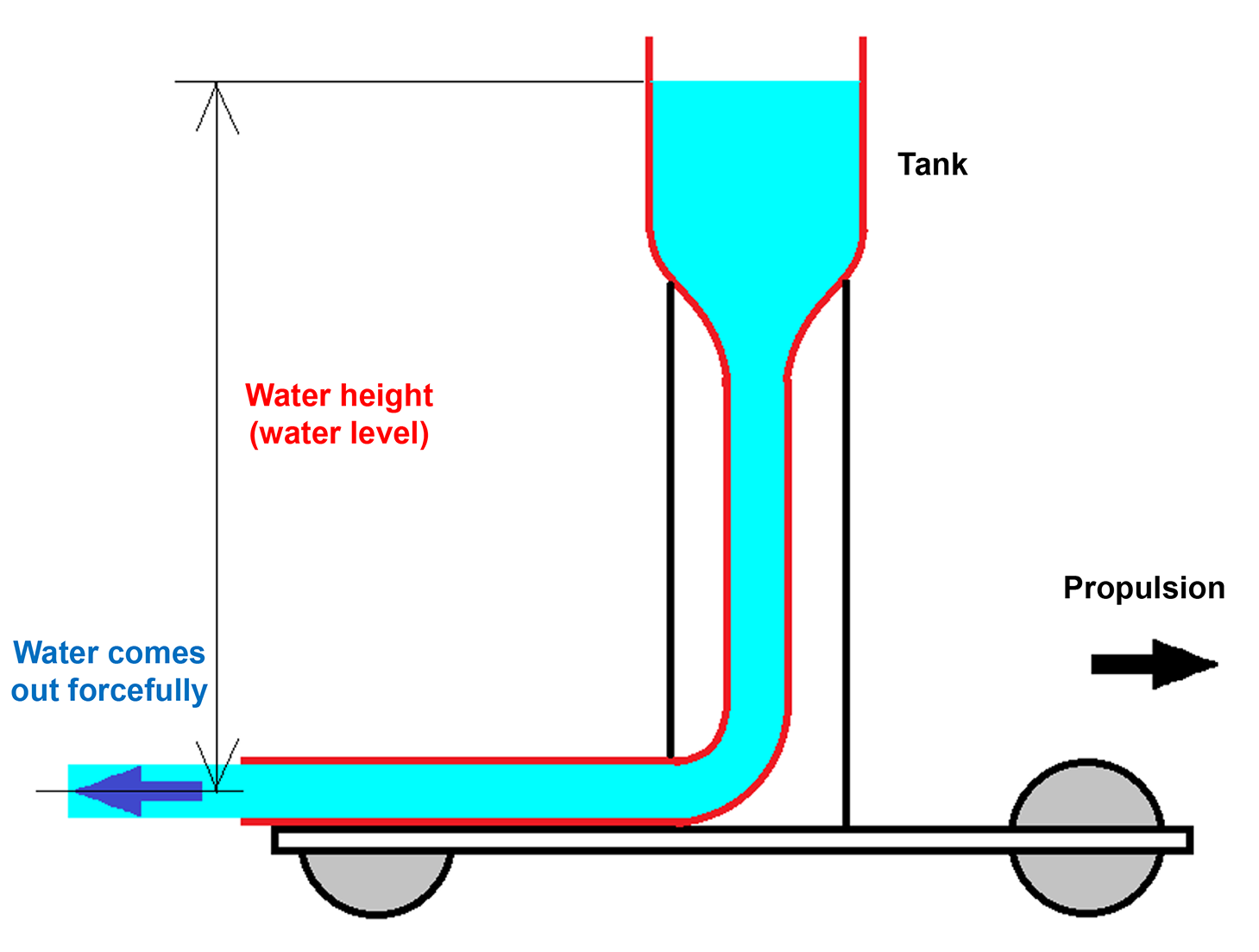 - Fill the tank with water while holding the hose outlet closed with your finger. When you release your finger, water flows out, and the car begins to move.