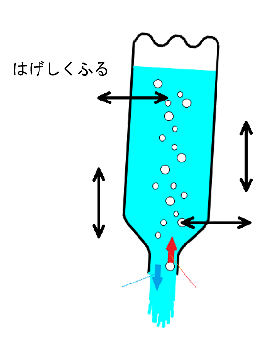 - この実験では、ともかくはげしくふってみます。効果はどうでしょうか?
