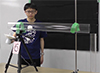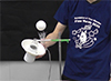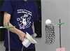 ボールをドライヤーで浮かせてテープの輪をくぐらせます。 |