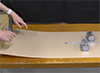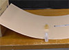 それぞれ、はちみつと水の入った容器を斜面でころがしてどの高さまでのぼるか、くらべてみましょう。 |