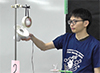 ボールをドライヤーで浮かせてテープの輪をくぐらせます。 |