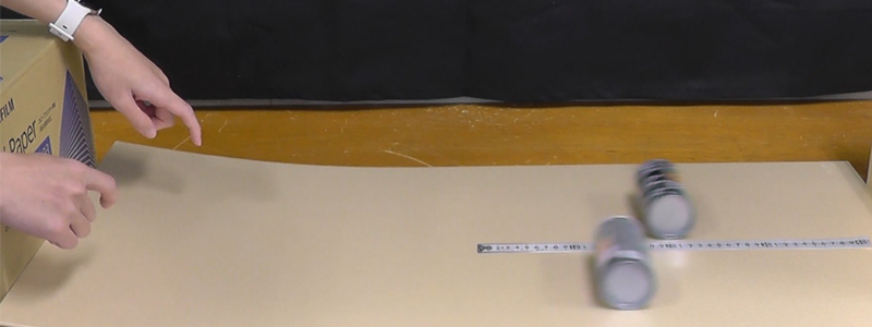 常温のかんコーヒーとこおらせたかんコーヒーを斜面でころがします。どちらのほうが速くころがるでしょうか? |