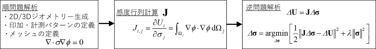 図1 電気トモグラフィー法の画像再構成フロー