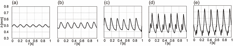 mm地点ではcapillary波と呼ばれる,主たる波の谷に現れる小さな波が出現し,その個数は下流に行くにつれて増加する.この一連の発達過程はKapitza不安定性に典型的なものである.側壁幅10 mmという小さなチャネルでこのKapitza不安定性による表面波が観測されたのは初めてのことである.